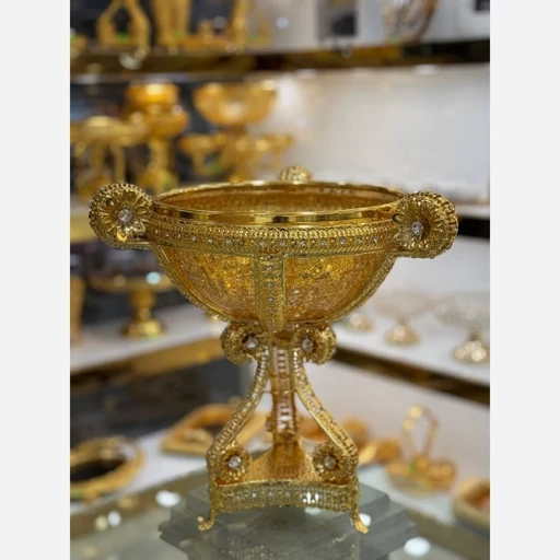 آجیل خوری نگین دار پایه مثلثی طلایی اماراتی 1728
