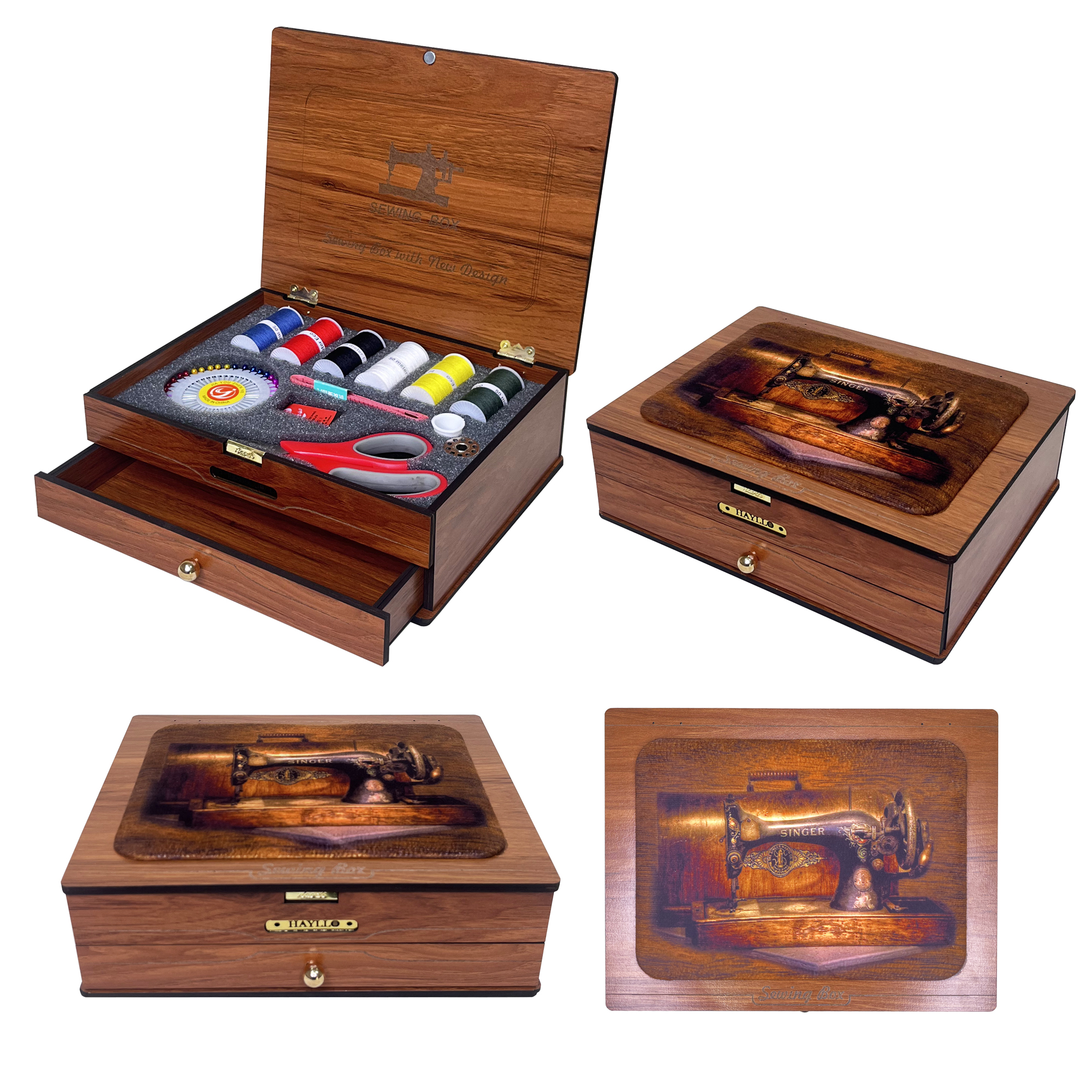 جعبه جا نخ سوزن ام دی اف مدل ارکیده گردویی روشن