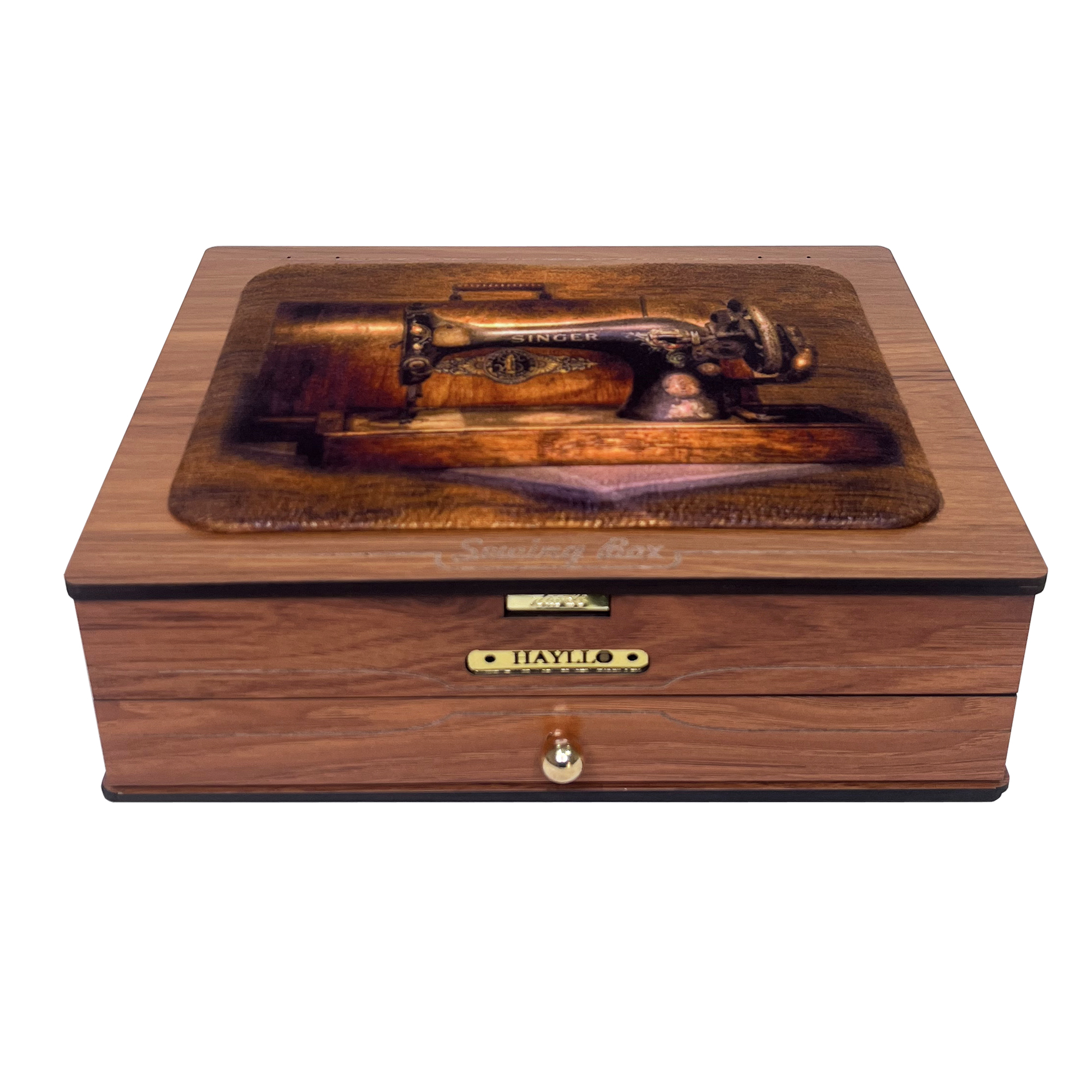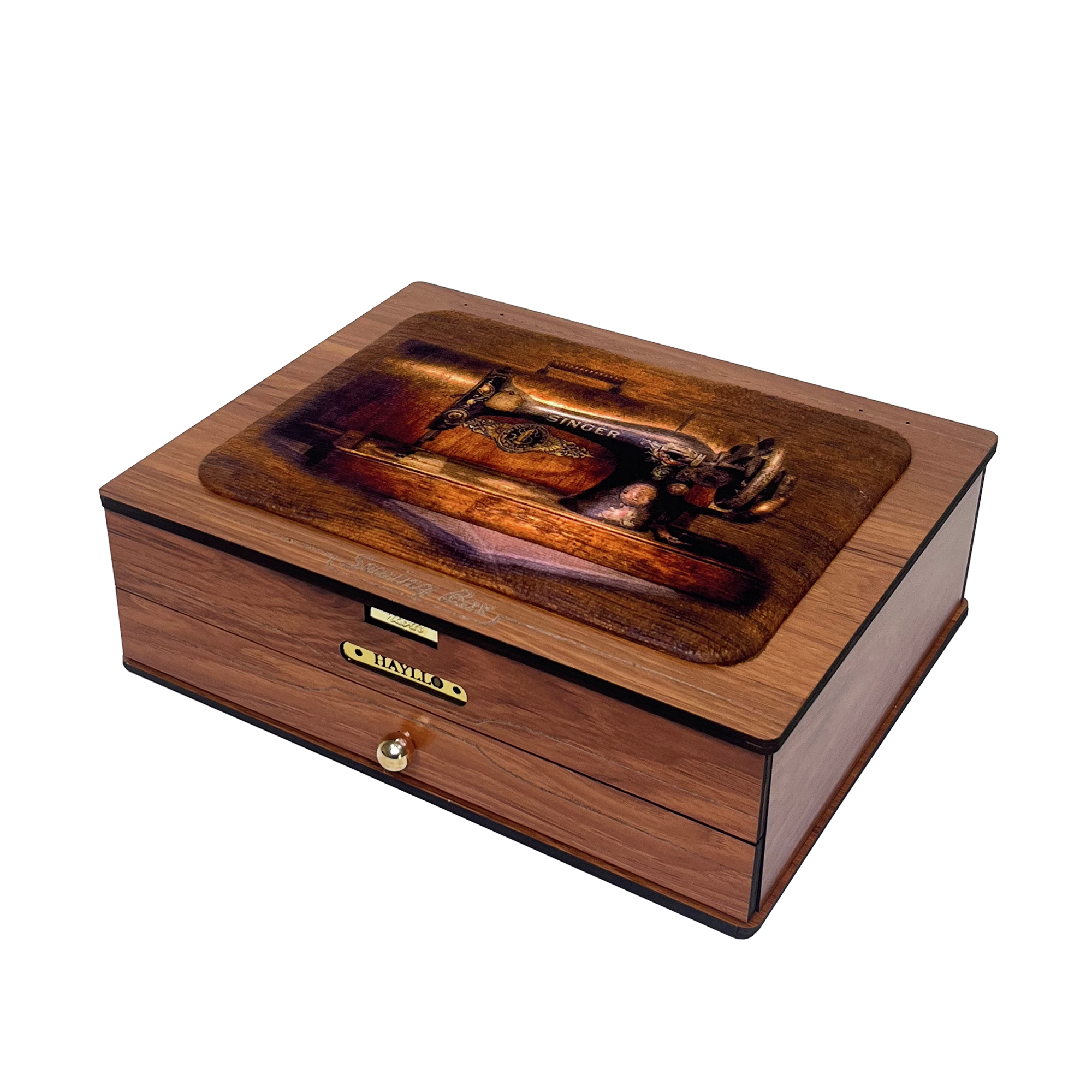 دارای یک کشو جهت تعبیه نخ ، سوزن ، لوازم و ابزارهای خیاطی