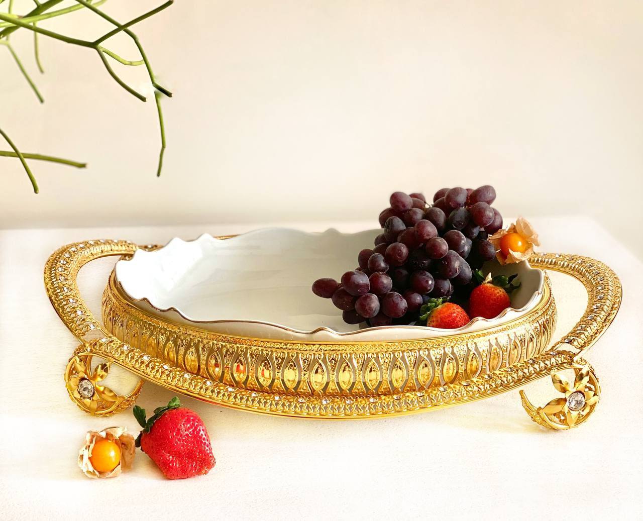 دیس پذیرایی نگین دار طلایی بیضی متوسط اماراتی 1752