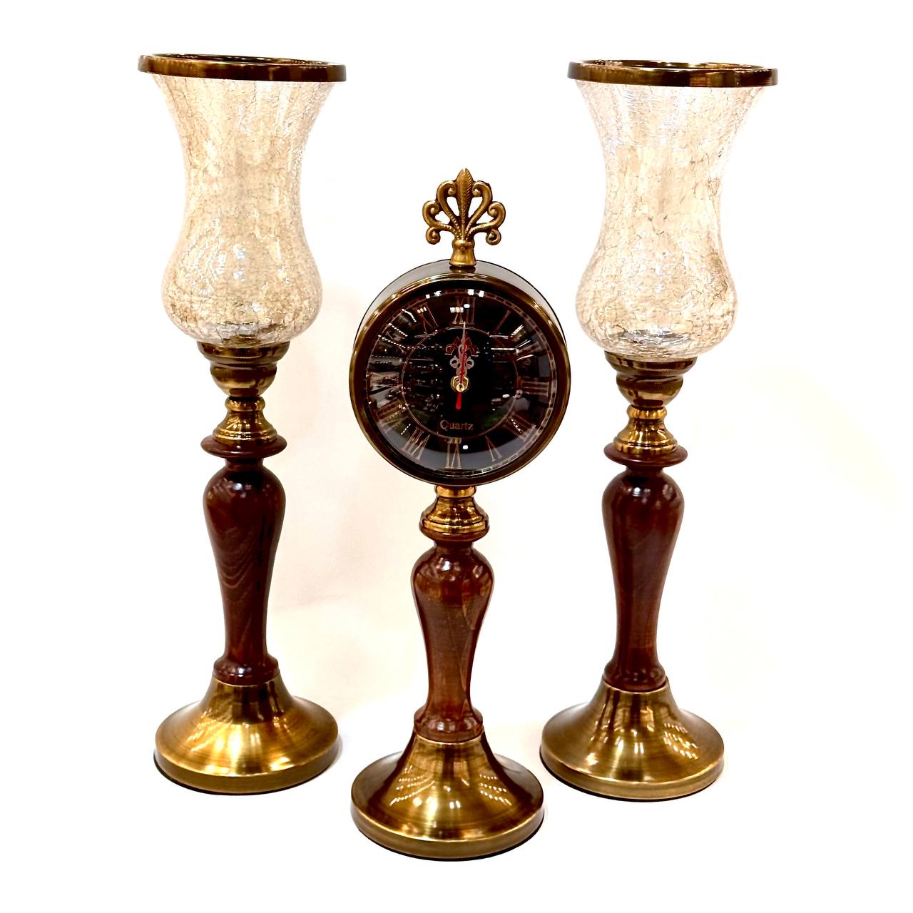 ست ساعت و شمعدان چوبی فلزی آنتیک 1430/1403
