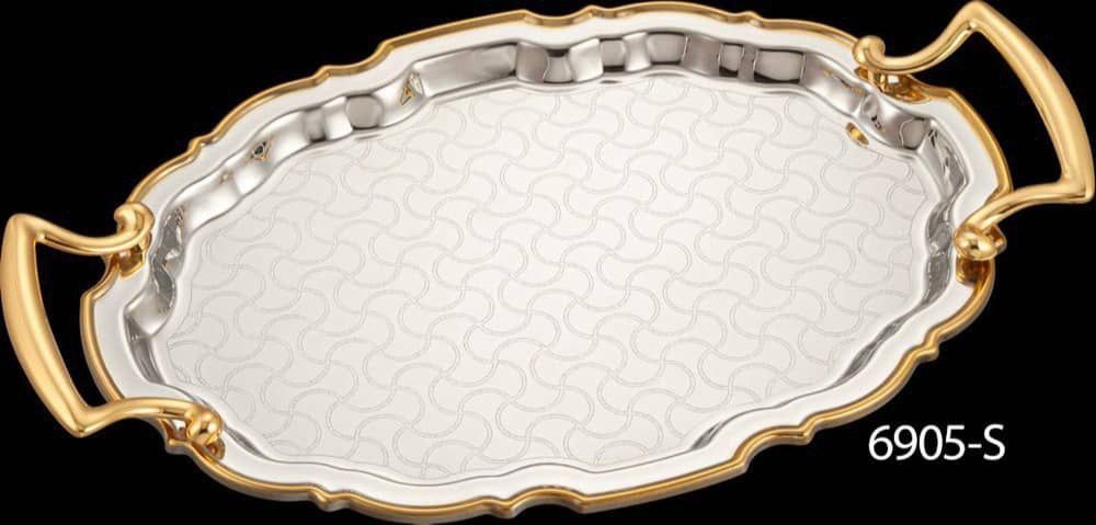 سینی تک بیضی استیل سیلور دور طلایی 6905