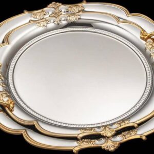 سینی تک بیضی استیل سیلور دور طلایی 6913