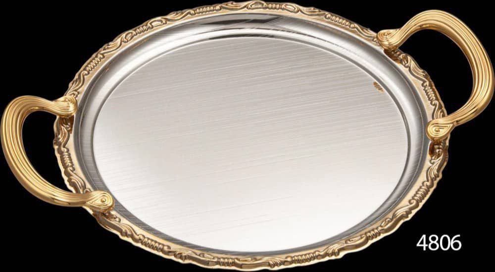 سینی تک دایره استیل سیلور دور طلایی 4806