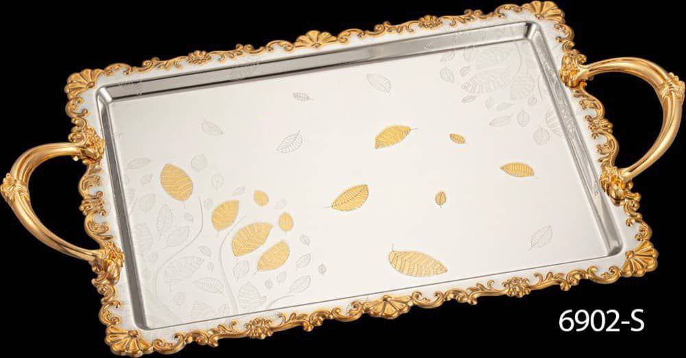 سینی تک مستطیل استیل سیلور دور طلایی 6902