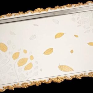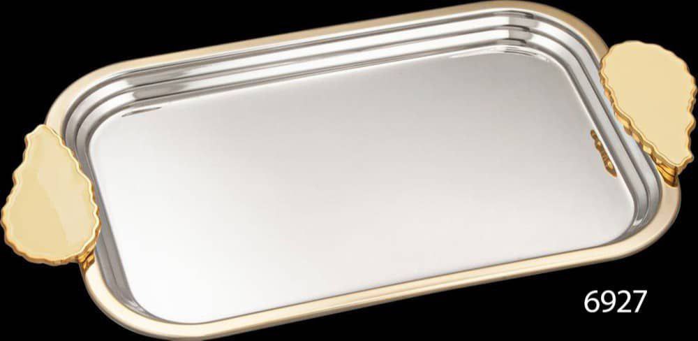 سینی تک مستطیل استیل سیلور دور طلایی 6927