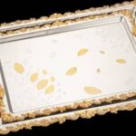 سینی جفتی مستطیل استیل سیلور دور طلایی 6902