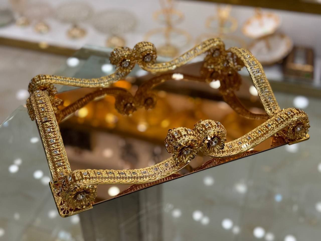 سینی نگین دار طلایی کالسکه ای اماراتی 1357